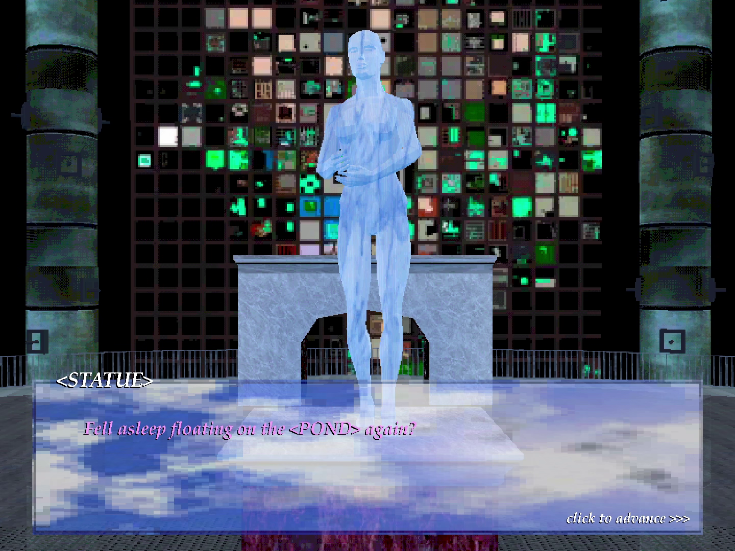 You are the last Traveller left on an abandoned <SERVER>. For 10 years you have explored this user generated kingdom and made it your home. With nothing left to do but sleep on the <POND>, you take odd jobs harvesting ancient structures from a broken NPC.
